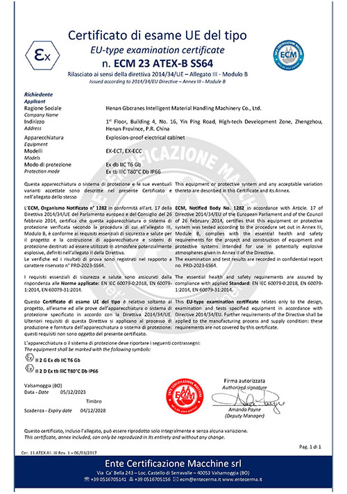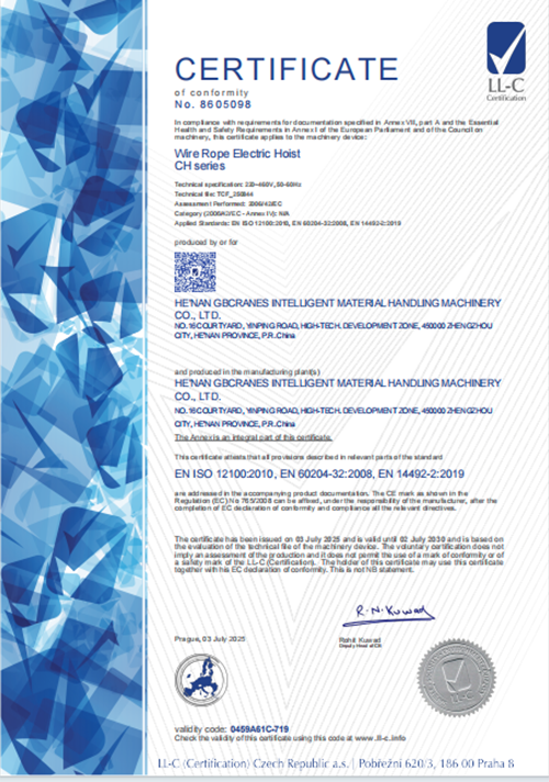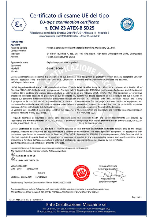 Explosion-proof Wire Rope Hoist ATEX Certificate