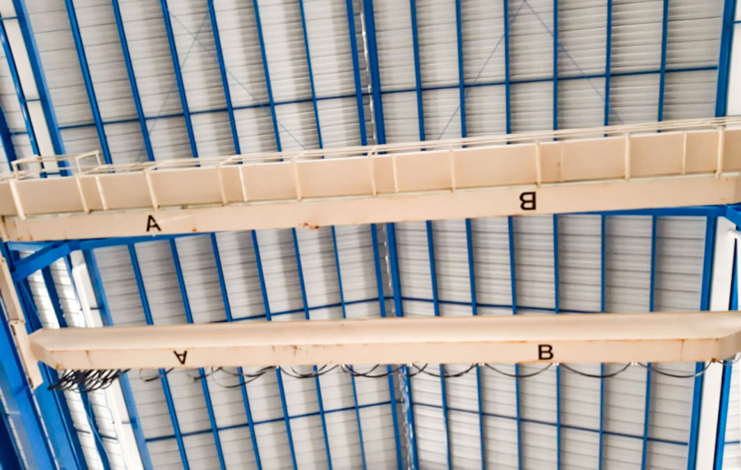 According to the customer's demand, the double girder overhead crane (15+10Ton) realizes the simultaneous lifting of double hoists, and the crane that run on the same runways are equipped with photoelectric anti-collision device. In addition, the double girder overhead crane (15+10Ton) adopts an eight-wheel structure. The eight-wheel structure not only allows the end carriage to be disassembled into three sections, which is convenient for transportation, but also disperses the wheel pressure, which greatly extends the life of the track, rail bearing beam, and column, and facilitates adding new crane on the same span in the future.