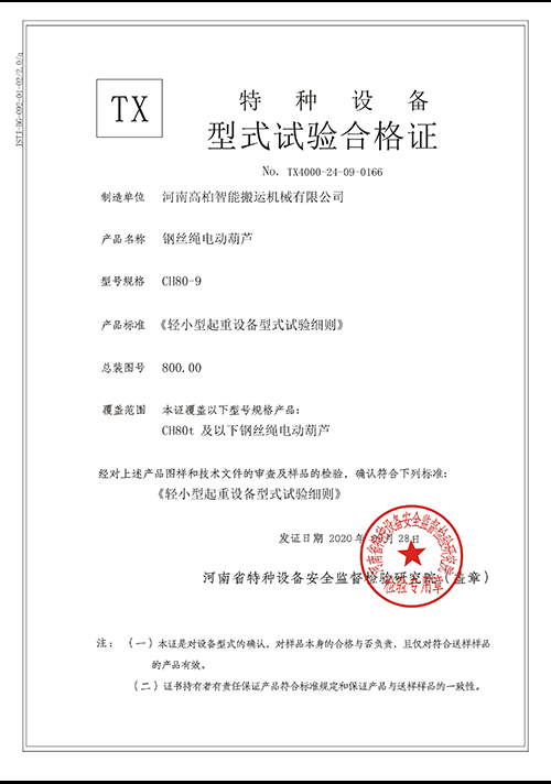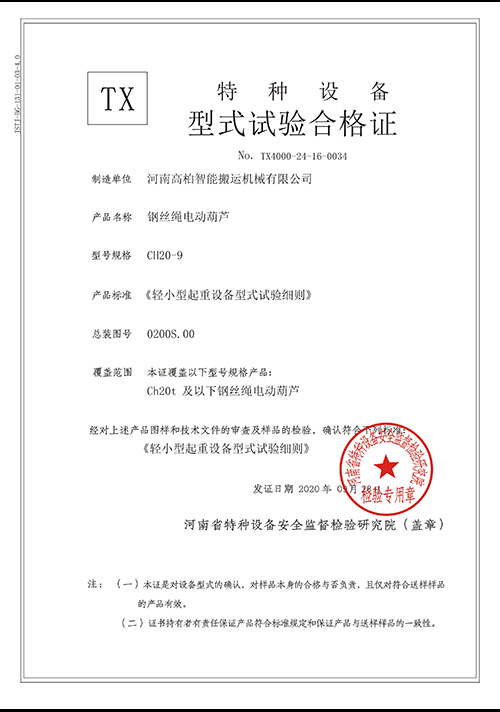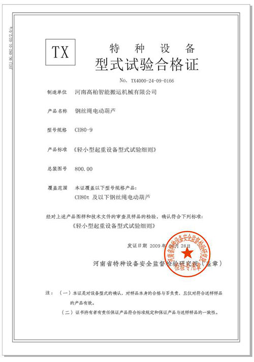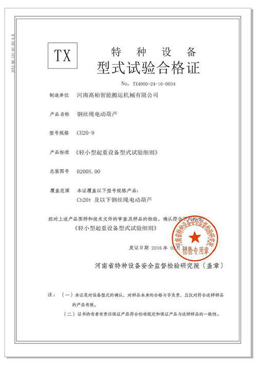 Explosion-proof Wire Rope Hoist ATEX Certificate